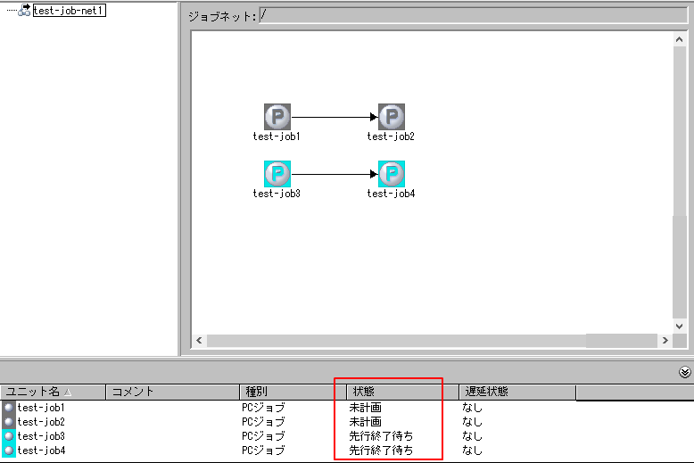4.ジョブネットの状態が保留中になります。※保留中の色は設定で変更できます。