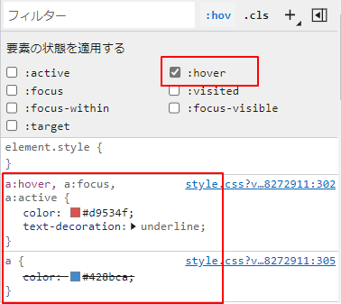 hoverなどの疑似クラスをクリックした時のCSSを確認する