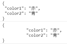 以下は、JSONです。キー(color1とcolor2)にダブルコーテーションがついています。