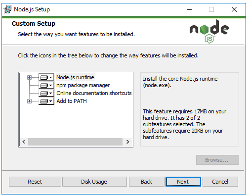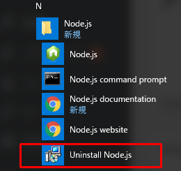 Node.jsをアンインストールする場合は、スタートメニューからUninstall Node.jsを選択します。