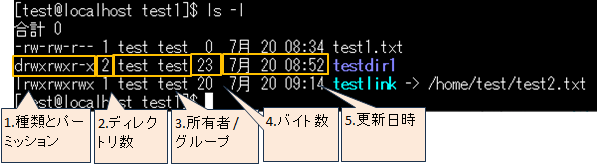 | サンプル | lsコマンドで表示される一覧の見方 |