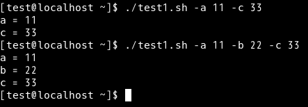./test1.sh -a 11 -b 22 -c 33