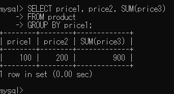 mysql> SELECT price1, price2, SUM(price3)