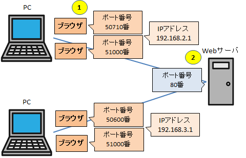 PCからWebサーバに接続するまでの流れとポート番号についてです。