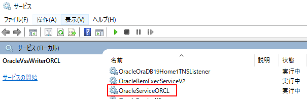 Windowsのサービスでは、OracleServiceの後のORCLがSIDです。