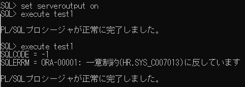 (ORA-00001: 一意制約(HR.SYS_C007013)に反しています)