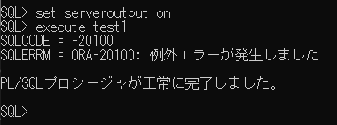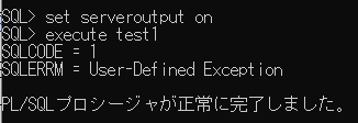 SQLCODEは1で、SQLERRMはUser-Defined Exceptionと表示されます。