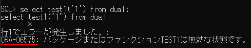 ファンクション作成時にコンパイルエラーが発生したときは、show errorと入力するとエラー内容が表示されます。