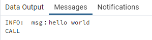 RAISE INFO 'msg:%', STR1; --'msg:hello worldが出力される