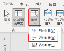 3.「削除」から「行の削除」をクリックで行が削除されます。