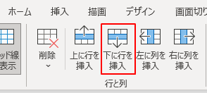 3.「下に行を挿入」をクリックすると行が追加されます。