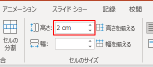 3.高さの数値を調整すると、テーブルの全ての行の高さが調整されます。