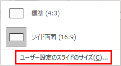 2.「ユーザ設定のスライドのサイズ」をクリックします。