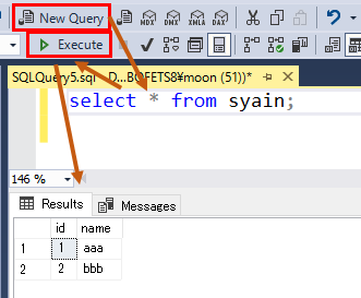 SQLServerのSSMS(SQL Server Management Studio)でSQL/ストアドを実行するサンプルです。