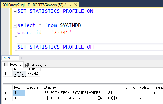 1.SQL実行前に「SET STATISTICS PROFILE ON」を実行すると以後実行計画が表示されます。