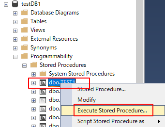 ストアドプロシージャを右クリックし、Execute Stored プロシージャをクリックするとダイアログが出るのでOKボタンを押して実行します。