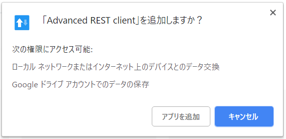 ChromeウェブストアのAdvanced REST clientをインストールします。