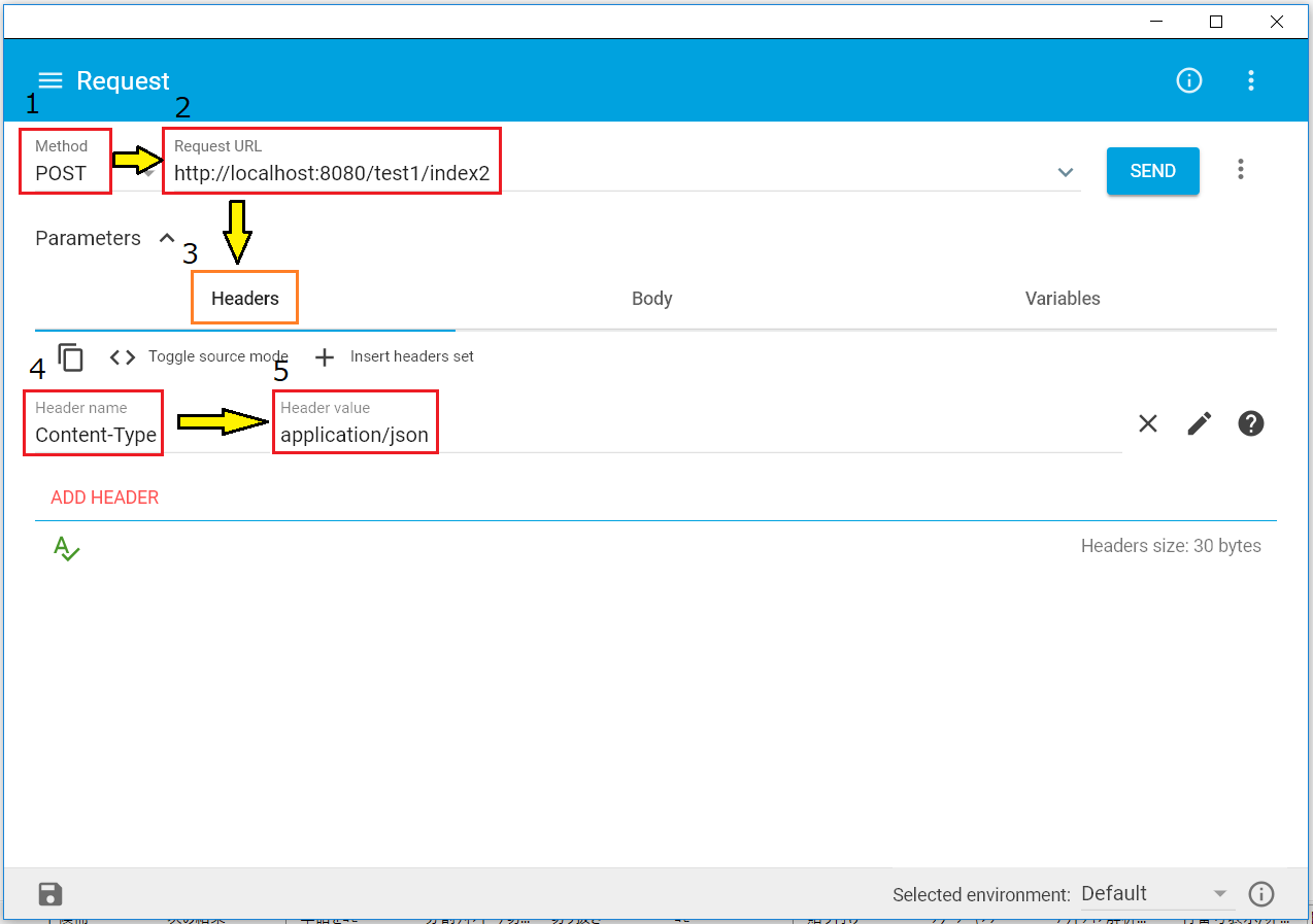 5.Content-Typeに対するヘッダー値を選択します。application/jsonを選択しました。