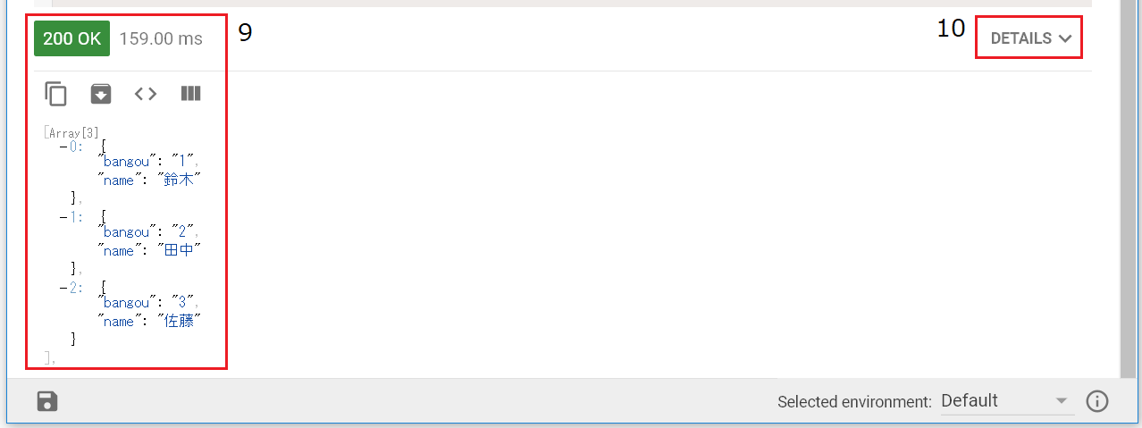 9.実行した結果のレスポンスステータスが表示されます。200は成功です。
