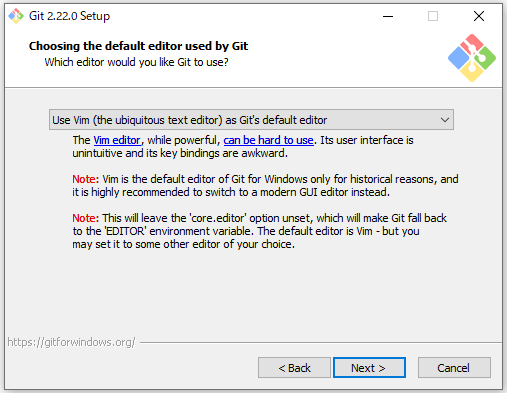 5.デフォルトのエディターを指定します。デフォルトのままNextボタンをクリックしました。