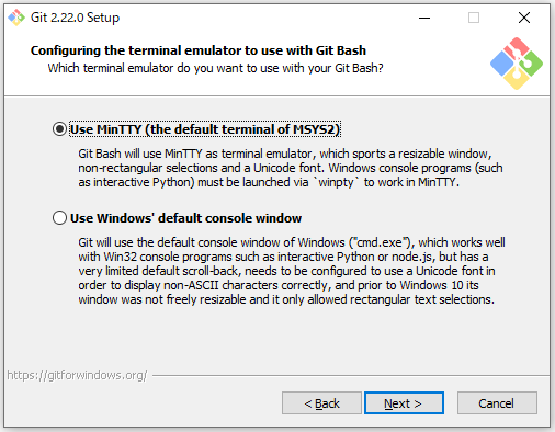 9.Git Bash使用時のターミナルエミュレーターを指定します。