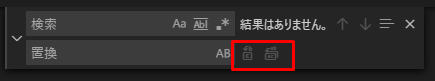 1.Ctrl + Fを押して検索欄を表示させ、矢印(赤枠)の箇所をクリックします。