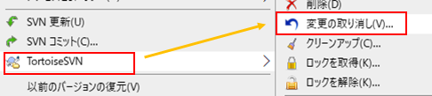 2.「TortoiseSVN」から「変更の取り消し」をクリックします。