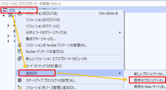 Visual Studioの既存プロジェクトを追加し参照する方法です。VB.NET,C#とも手順は同じです。