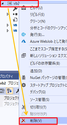 プロジェクトを削除する場合は、プロジェクトを右クリックし、削除をクリックします。