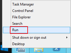 1.スタートボタンを右クリックし、Run(ファイル名を指定して実行)をクリックします。
