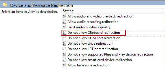 5.クリップボードのリダイレクションの項目をダブルクリックします。
