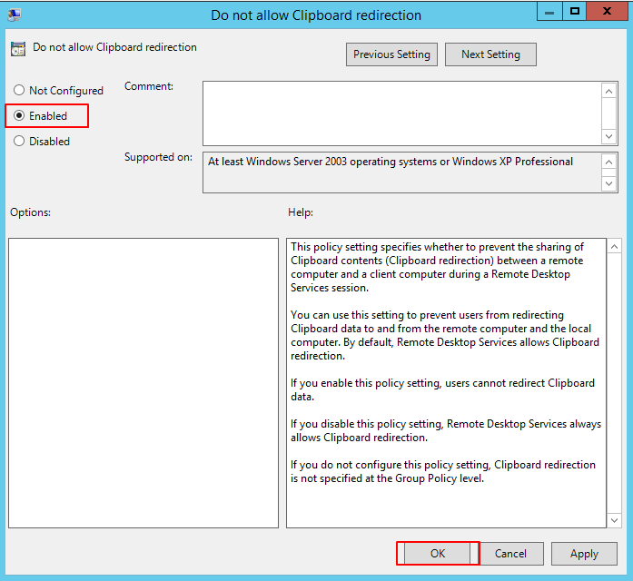 | リモートデスクトップ接続のダイアログでコピー禁止を設定 | |