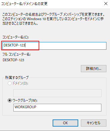 5.コンピュータ名のタブをクリックし、変更をクリックします。