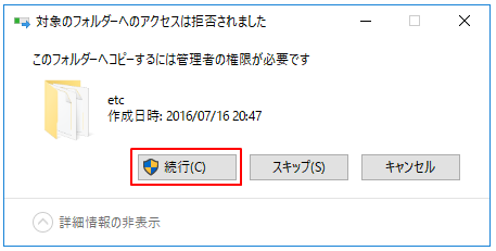 2.修正したhostsファイルを元のC:\Windows\System32\drivers\etcにコピーします。