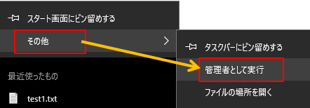 2.「その他」>「管理者として実行」をクリックします。
