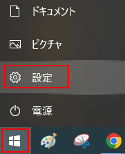 1.左下にある「スタート」から「設定」を選択します。