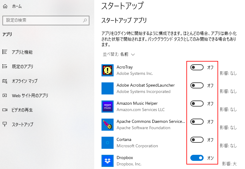 Windows10のアプリの自動起動を停止する方法です。