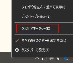 1.タスクバーを右クリックしてタスクマネージャーを起動します。