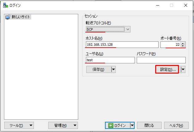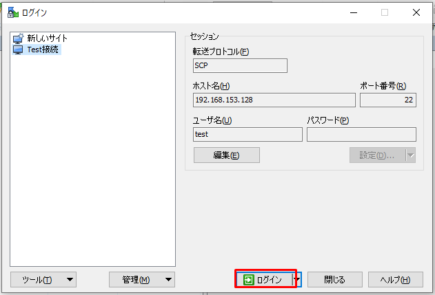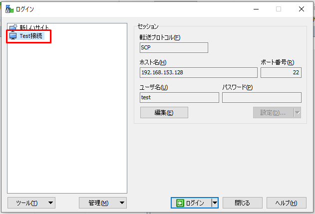 | サンプル | ローカルPCのWinSCPでリモートPCに接続する |