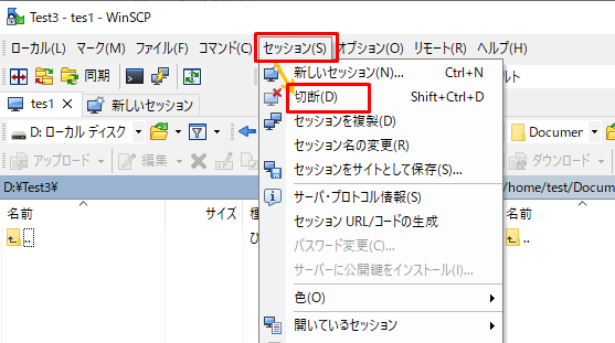 1.「セッション」→「切断」をクリックします。