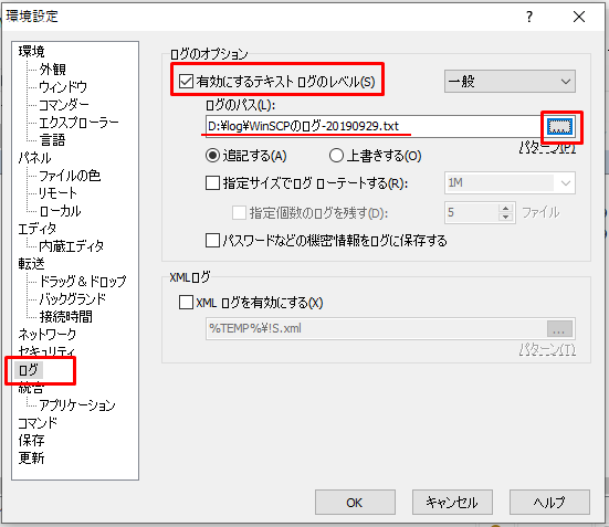 1.WinSCPのファイル転送時のログの取得方法です。