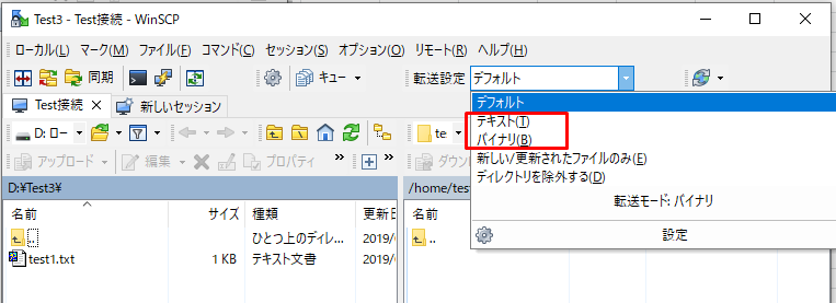 注意:転送モードのテキストとバイナリの違い