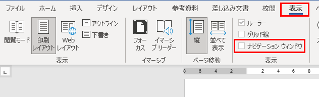 1.表示→ナビゲーションウィンドウにチェックを入れます。