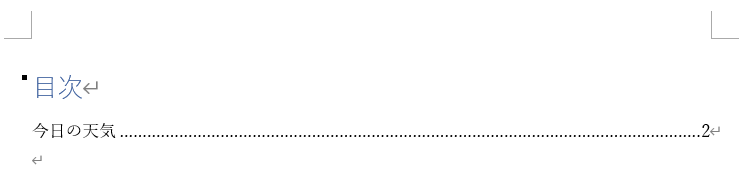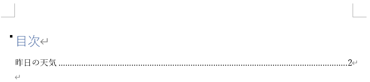 例として、目次の元の部分の「今日の天気」を「昨日の天気」に変更したとします。