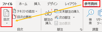5.「参考資料」→「目次」をクリックします。