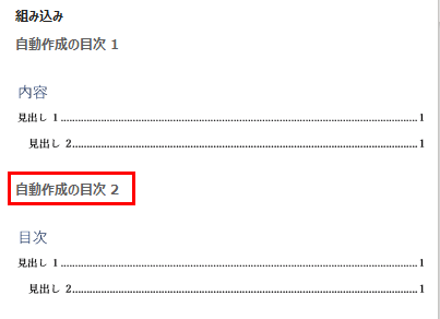 6.「自動作成の目次2」をクリックします。