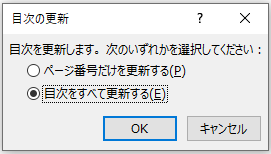 2.「目次をすべて更新する」を選択してOKボタンを押します。