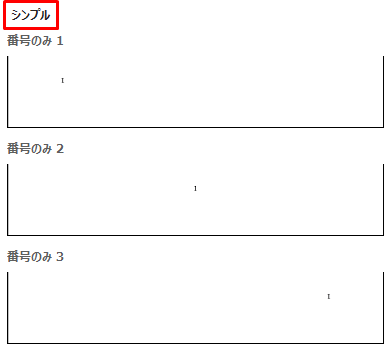 「シンプル」を選択するとページの下部に数値のページ数が表示されます。