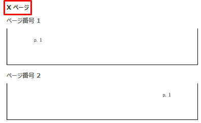 「Xページ」を選択すると「p.1」と表示されます。