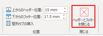 「ヘッダーとフッターを閉じる」はクリックしません。
